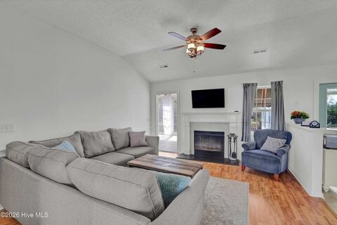 Unique premiere cul de sac location is a peaceful sanctuary!Cute as a button with a beachy vibe is the feeling that you get in thisadorable 3 bedroom 2 bath home with 2 all season rooms. This homebrings the outdoors in, and is ideally situated on a secluded lotoverlooking a pond and large open area that is great for watchingwildlife, such as Cranes, ducks, and geese. The open and airy floor planwith cathedral ceilings features a living room with wood burningfireplace open to the kitchen with hex tile backsplash and gorgeouswhite farm sink, and all stainless appliances. Step into the large openvaulted sunroom that is heated and cooled by a mini split to enjoy allseasons. If that is not enough, there is an additional 14 x 11 sunroomoff of the living room that is ideal for chilly mornings. (not included inoverall heated square footage) The primary bedroom boasts plenty ofstorage with built in cabinets and a 8 x 5 walk in closet. The ensuitebath features a custo