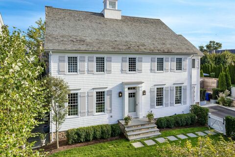 Masterpiece in Rowayton. Originally designed by legendary architect Bruce Beinfield, this exceptional home was expanded by its current owners, who merged two properties to create one of Rowayton's truly one-of-a-kind residences. Pool. Yard. Privacy. Just steps from the beach and a short stroll to town. Tucked behind 30-foot evergreen hedges lies a true sanctuary: a 35-foot gunite pool, outdoor kitchen, bluestone patios, and one of the largest, most private yards in Rowayton. With coveted southern exposure, the backyard and interior are bathed in beautiful natural light from morning to evening. Inside, plaster walls, reclaimed beams, and hand-finished cedar ceilings create warmth and character throughout. The chef's kitchen, featuring a large gas range, dual dishwashers, and striking marble, opens seamlessly to a family room with wood-burning fireplace. Gracious living and dining rooms complete the first floor.Upstairs, the tranquil primary suite features vaulted ceilings, reclaimed bea
