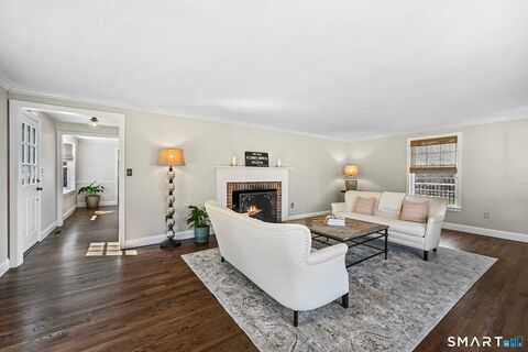 Set along one of Weston's most picturesque and sought-after roads in Lower Weston, this beautifully renovated Colonial farmhouse blends timeless charm with thoughtful modern upgrades on 2.59 level acres. Meticulously maintained and move-in ready, the home offers 4 bedrooms, 3 full baths, and approximately 2,646 square feet, including a finished walk-out lower level with fireplace. The sun-filled kitchen features cathedral ceilings, exposed beams, granite countertops, custom cabinetry, stainless steel appliances, and a new French door (2025) opening to the outdoor living spaces. A gracious living room with fireplace, formal dining room with bay window, and flexible fourth bedroom complete the main level. Upstairs are three well-proportioned bedrooms, including a comfortable primary suite with an updated bath. Extensive recent upgrades include refinished hardwood floors and fresh interior paint (2026), renovated lower level (2025), Trex wraparound deck and covered side porch (2024), fen
