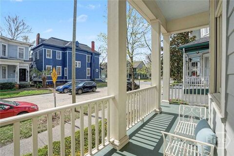 Located 4 blocks from Forsyth Park in the heart of Savannahs Victorian District, this 3 BR/3.5 BA freestanding home blends modern construction, thoughtful design and elegant interiors. Built in 2015, this exceptional home offers Victorian-inspired architecture, durable Hardie Plank construction, incredible natural light, soaring ceilings, beautiful millwork & designer lighting. Enjoy a seamless flow between living spaces on the main level plus 2 primary suites with luxurious appointments. The open-concept main level includes a bright, spacious living room with gas fireplace & bay windows, dining area, gourmet kitchen with Carrara marble countertops & all-new appliances, primary bedroom with marble bath and walk-in closet, powder room & laundry. Upstairs, enjoy another primary suite with private covered porch, cozy family room and 3rd en suite bedroom with bay windows. Additional highlights include a private brick-paved courtyard, front porch, screened porch & off-street parking.