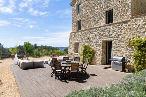 The spectacular living area sets the tone: a bright and spacious lounge, fully equipped open kitchen, and welcoming dining area — all opening onto a vast panoramic terrace with breathtaking views over the hills. This level also includes a wine cellar, an office, a laundry room, and a beautiful en-suite bedroom.