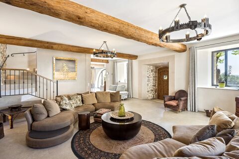 With nearly 350 sqm of living space, this exceptional property impresses with its generous volumes, refined renovation using noble materials (natural stone, exposed beams, custom finishes), and an atmosphere that is both warm and sophisticated.