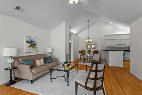 Welcome Home to Sweet Apple Orchards Where Low-Maintenance Living Meets the Good Life! Imagine waking up in a sun-drenched, one-level condo where everything has been done for you fresh paint, professional cleaning, and move-in ready perfection. This stunning 2-bedroom, 2-bathroom gem in the heart of Alpharetta's sought-after Crabapple neighborhood is ready for its next chapter. Inside, you'll fall in love with: vaulted ceilings that make every room feel welcoming, a gorgeous sunroom overflowing with natural light your new favorite morning coffee spot, a spacious kitchen with all-white appliances, generous cabinet storage, and an open view to the dining and family room, and large walk-in closets that give you room to breathe. Outside your door, amenities await with a saltwater pool, a small fitness center, a beautifully appointed fireside clubhouse with a full kitchen, and a vibrant calendar of social activities. The location is unbeatable. The home is conveniently located near ma