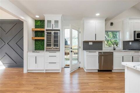 949 Sylvan Place is the kind of renovated bungalow buyers wait for. A main level primary suite, open layout with an easy, natural flow, and everything replaced so you can move in and exhale. Enjoy a bright, updated kitchen with quartz counters, a crisp tile backsplash, stainless Samsung appliances, soft close cabinetry, and a built in beverage and wine cooler that makes hosting effortless. The living spaces feel warm and inviting with brand new flooring throughout and a decorative electric fireplace that also provides heat for cozy nights in.Behind the home, a fenced backyard gives you the space you actually want, room to grill, gather, add a fire pit, and let pets or kids run. A side entry door leads to a convenient small deck, perfect for morning coffee or stepping out while you entertain. Major improvements include a new architectural roof, new HVAC and furnace, and updated plumbing and electrical, plus the renovation has been inspected and approved by the City of Atlanta. Off st