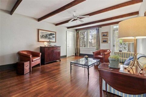Welcome to 2814 Peachtree Road, a charming mid-rise 3-story condominium building in the heart of Buckhead! Constructed in 1925, this end unit on the middle floor has a wonderful, open floorplan and flow. It boasts the most gorgeous hardwood floors, tons of natural light, tall ceilings, beautiful millwork, a beamed ceiling, and the prettiest private, covered patio area to enjoy Mother Nature! This Unit #10 is situated in a prime spot back from the main road with views (through the towering Magnolia trees) of the city and the Farmer's Market at the Cathedral of St. Philip. The two bedrooms are spacious with ample storage space. You will so appreciate the freshly painted interior, new microwave and range, along with charming period details such as crystal doorknobs, arched doorways, and a charming bar - coffee station alcove. Residents have covered parking, basement storage and lovely mature grounds.This location is absolutely tremendous, walkable and convenient to The Peach Sho