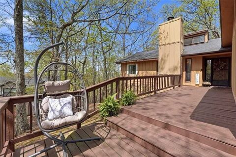 A storybook mountain bungalow ranch home w/ xl garage and level drive! If you can show me a better home for the value, then I'll give a season pass for Open Georgia Wine! The gentle ambiance of a sunset view w/ seasonal Lake Tamarack views framed by surrounding mountain vistas. A charming walking path winds through lush green space to the community pool and tennis/pickleball center, enhancing the homes quiet, resort-style atmosphere and inviting an easy rhythm of daily living. Thoughtfully renovated throughout, the residence blends comfort with intention featuring a new HVAC system, updated kitchen appliances, a whole-house generator, beautifully remodeled baths, and a shiplap ceiling that adds warmth and architectural character to the open-concept living area. The glass-enclosed back room provides a light-filled retreat for morning coffee or evening unwinding, while the expansive deck extends the living space outdoors on a rare, level lot designed for effortless entertaining or pe