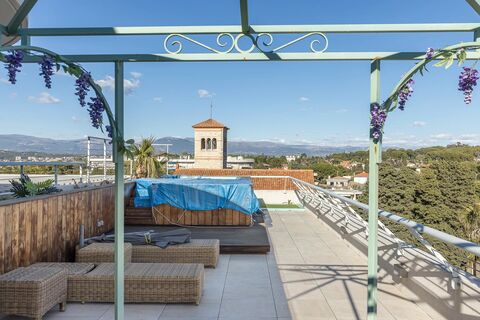 This unique rooftop terrace penthouse boasts stunning views overlooking Nice to the