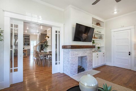 This storybook house in beautiful Winnetka Heights is the pride and joy of an architect and builder. Over years they lovingly updated and restored it for their family with an emphasis on function, restoring beauty, and creating inviting spaces for everyday life. The result is a charming home with more than just good bones. A beautiful kitchen shines with expansive countertops, abundant floor to ceiling cabinets, and stainless steel appliances. In the primary suite you'll find a large walk-in closet, and spa-like bathroom featuring dual-vanities, a huge walk-in shower with bench, and even more storage. Another large bedroom on the primary floor has built-ins including a Murphy bed for convenience and versatility. Upstairs you'll find the generously sized flex space with a half-bath that could be another non-conforming bedroom, a hobby room, or a home office. There is more than meets the eye with this home too- with spray foam insulation above and below, updated electric and plumbing ups