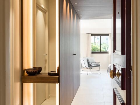 Der Schlafbereich umfasst zwei elegante Suiten, jeweils mit integriertem Kleiderschrank und privatem Duschbad - fur hochsten Komfort, Stil und Privatsphare.