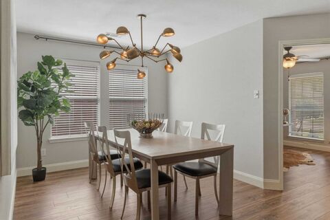 Listed by Baldemar De Leon. 1% temporary rate buy-down available when using preferred local lender. Welcome to 1144 Golden Eagle Ct in Aubrey, a beautifully updated home offering exceptional space, thoughtful design, and a strong community setting. This 4-bedroom, 2.5-bath home features a dedicated home office, formal dining room, and an expansive game room, creating a practical balance of everyday living and entertaining space. The kitchen offers abundant natural light and granite countertops, with matching finishes carried into all bathrooms for a clean, consistent look throughout. Upstairs, youll find a large game room along with three generously sized bedrooms, each with oversized walk-in closets, plus a well-appointed guest bathroom. The layout provides clear separation of space while maintaining comfort and flow. Step outside to a private backyard with a covered patio overlooking a peaceful greenbelt. The setting offers privacy and space to design your own outdoor living area. A