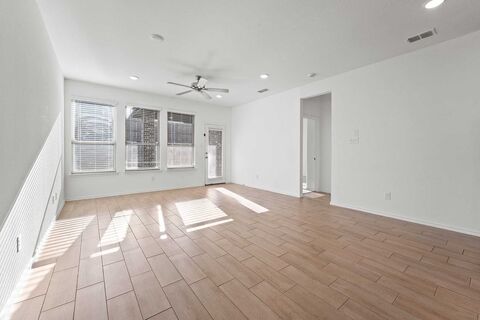 Welcome to 432 Silent Pond Park, a stunning 2023-built retreat in the highly sought-after Elevon master-planned community. This meticulously maintained 1,651 sq. ft. home offers the perfect blend of modern sophistication and everyday comfort.Step inside to an open-concept layout featuring a chefs kitchen that truly shines. Boasting upgraded eucalyptus-toned cabinetry, chic quartz countertops, and a custom designer hexagon backsplash, this kitchen is as functional as it is beautiful. The upgrades extend into the bathrooms with matching custom cabinetry, providing a cohesive and luxurious feel throughout.Retreat to the private primary suite, thoughtfully separated from the secondary bedrooms for ultimate peace. The smart home integration and tankless water heater add modern efficiency to your lifestyle. Outside, enjoy Texas sunsets from your covered patio overlooking a private, fenced yard and sprinklers. Residents of Elevon enjoy world-class amenities, including a resort-style