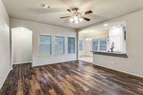 Beautifully accented with brick and stone, this 3-bedroom, 2-bath home offers standout curb appeal and a desirable split-bedroom layout. The spacious family room overlooks the private backyard, creating a bright and inviting gathering space. The kitchen features granite countertops, ample workspace, and a countertop bar perfect for casual seating.Durable wood-like flooring and ceramic tile run throughout the main areas for easy maintenance. Exterior features include gutters, a full sprinkler system, and a well-kept yard. Fantastic community pool to enjoy during the hot Texas summers. Located in Burleson ISD with quick access to major highways, this home blends comfort, convenience, and style.