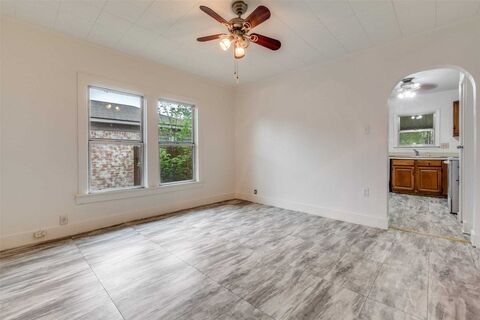 Charming Tudor cottage in The Dells with classic curb appeal and strong investment potential. This character filled home features a welcoming arched entry, steep gables, and mature trees. Fresh interior paint provides a clean starting point, while the home is ready for updates, making it ideal for investors or buyers looking to add value. The detached two car garage adds valuable storage, parking or workshop potential. Conveniently located near Martin Weiss Park and Recreation Center with easy access to I 30 and Loop 12. Great opportunity to renovate, rent or personalize in a delightful cottage neighborhood. Per neighborhood umbrella organization Heritage Oak Cliff, the Dells District is nestled in a wooded area and backs up to the riverbed of Coombs' Creek. This same creek meanders up through Stevens Park Golf Course and several Oak Cliff developments to the east and north. The Dell District remains a charming enclave of cottages with well-established trees and an excellent potential