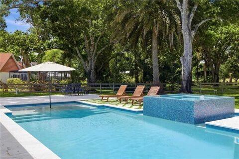 Ample space to live, expand, and make it your own. Rare find in Vero Beach on 1.25 acres with no HOA! Spacious 4BR/3.5BA home with over 3,800 SF featuring oversized bedrooms and living areas, a charming wood-burning fireplace, and tons of character throughout. Enjoy a brand new custom saltwater pool & spa with travertine patio. Mature oak canopy provides privacy and beauty. Quiet neighborhood with no restrictionsbring your boats, RVs, and trailers. The perfect Vero Beach family home to grow into and entertain with space, freedom, and endless potential! Rmsizeapprox