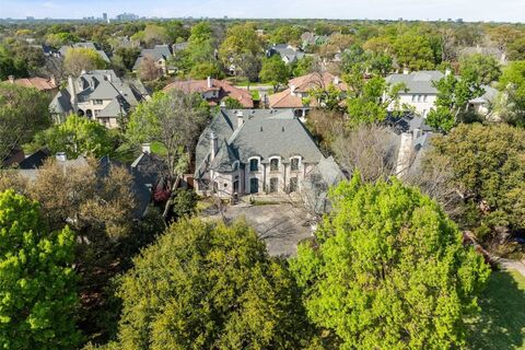 Spectacularly updated, this timeless Country French estate is ideally situated on one of the most prestigious streets in Preston Hollow, framed by a grand, tree-lined boulevard. Set on an expansive half-acre lot, the property offers a serene setting with mature trees, lush gardens, and beautifully curated landscaping. Designed by Robbie Fusch and built by Oscar Ponder, the home seamlessly blends classic architecture with refined, modern updates. The homes understated elegance gives way to exquisite designer interiors. Rich details include gallery-style hallways trimmed in stone and striking, soft color palettes of paint and tile. The private study features a fireplace with a sleek marble mantle and corner windows that flood the space with natural light. Gracious formal living spaces include a large formal room with fireplace, flowing seamlessly into the dining room and opening to an extended loggia with a stunning cloister-vaulted ceiling. French doors lead to a tranquil garden and fo