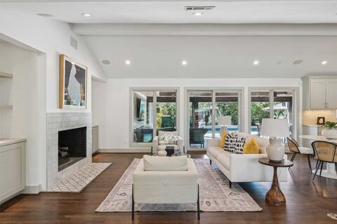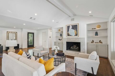 Stunning, thoughtfully designed open-concept home situated on a 120x150 foot lot in one of Dallas most sought-after neighborhoods. Built in 1956, this single-story home offers exceptional curb appeal, multiple entertaining spaces, and over 500 square feet of covered outdoor living. Off the entry, youll find a formal living room and an inviting family room featuring vaulted ceilings, custom built-ins, and a gas fireplace. These spaces flow seamlessly into the formal dining room and a beautifully appointed chefs kitchen. The kitchen is equipped with an expansive island, two dishwashers, built-in refrigerator, beverage refrigerator, double ovens, microwave, and an impressive walk-in pantry area with built-ins and a full-size wine refrigerator. An adjoining breakfast room completes the space. Adjacent to the kitchen is a spacious game room with built-ins and a full bathideal for entertaining or flexible living. The private primary suite is tucked at the rear of the home, offering seren