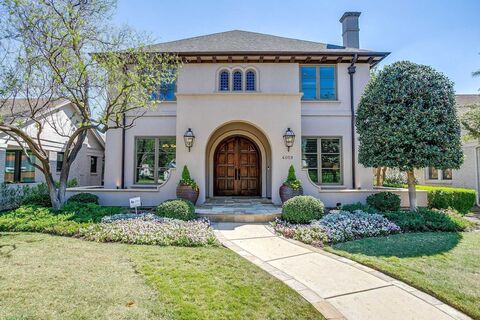 Experience comfort and style in this 4-bedroom, 3.5-bath, two-story home featuring 4,472 SF of thoughtfully designed living space. The downstairs primary suite offers a private retreat with walkout access to the back patio, a study with built-in bookshelves that conceal a secret door to the primary suite. Enjoy an open kitchen and living area with wood floors on the first story, perfect for gatherings and everyday living. The homes exterior includes a welcoming front porch and a back patio, surrounded by an easy-to-maintain yard. High ceilings throughout the interior create an airy and welcoming atmosphere, while the upstairs offers a spacious family room, a separate media room, and a wet bar for entertaining. Located in a highly desirable neighborhood just half a block from the River Crest Country Club golf course, this home provides convenient access to Camp Bowie Boulevard and downtown Fort Worth. A two-car garage with alley access completes the property, offering both functionalit