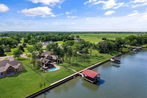 Nestled on 1.01 acres in the desirable Shores subdivision on Richland Chambers Lake, this stunning 4-bedroom, 2.1-bath lake house offers the perfect blend of comfort, space, and breathtaking waterfront views. The first floor welcomes you with an open floor plan designed for both everyday living and entertaining. The spacious kitchen features a large island, double ovens, abundant cabinetry, and pantry. Just off the kitchen is a large laundry room and convenient half bath. The living room is a showstopper with vaulted ceilings, a dramatic stone fireplace, and floor-to-ceiling windows that capture incredible lake views. The primary suite is located on the main level and offers a peaceful retreat with private access to the covered outdoor patio. The ensuite bath includes separate vanities, separate shower, and his-and-hers walk-in closets for ample storage. Upstairs, you'll find a loft-style family room that overlooks the main living area, creating a bright and open feel. This level also