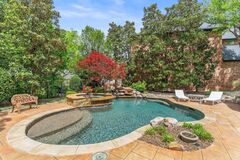 Exquisite French Custom home in prestigious Gated Kings Lake, Stonebridge Ranch, McKinney is beautifully updated. The home is poised on a premium greenbelt private lot. This extraordinary French inspired home exemplifies timeless European architecture, craftsmanship, and serene Texas luxury living. Surrounded by lush mature landscaping, the residence captures breathtaking views of the pool, spa, and greenbelt beyond. The grand family room impresses with vaulted beamed ceilings & soaring stone fireplace, offering a dramatic focal point and connection to the picturesque outdoor living space. Flooded with natural light, the interior is rich in architectural detail, from custom millwork and paneling to hardwood flooring that flows throughout the first level. The formal dining room is illuminated by a crystal chandelier, while the executive study features custom built-in shelving and paneled walls. The gourmet kitchen is open appointed with quartzite slab countertops, a marble split-face ba