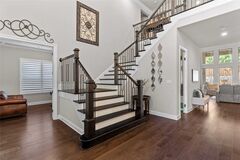 Exceptional north-facing one-story home in Prairie View, Frisco. Situated on over half an acre and ideally located just minutes from the PGA District and the future Universal Studios park, this stunning property offers 3 bedrooms and 4 baths, including 2 private in-suite bedrooms within the total bedroom count, a study with built-ins, and a versatile flex room that could serve as a game room, workout room, or optional fourth bedroom. Every room is oversized, with extra-high ceilings throughout most of the home. The thoughtfully designed floor plan features an extended primary suite, a second private suite ideal for guests or multigenerational living, and a spacious 3-car tandem garage. The premium smart-home package includes CAT5 wiring and mounted speakers throughout. The expansive backyard is an entertainers dream, featuring a sparkling pool, fountain, lighting and spa, a 1,132 sq. ft. travertine paver deck that stays cool during the hot summer months, a covered patio with electric