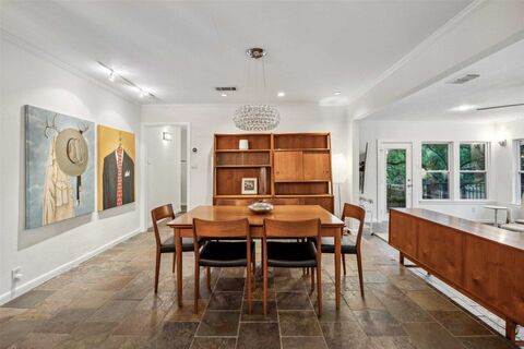 Perfectly positioned along the peaceful shoreline of Yosemite Lake and zoned to highly sought-after Lakewood Elementary, this beautifully updated ranch sits on an oversized, tree-shaded lot in a charming pocket of urban Dallas. Blending timeless character with modern comfort, the home offers an open, inviting layout ideal for both everyday living and entertaining. The formal living room makes a striking first impression with custom built-ins and a dramatic gas fireplace, creating a warm and welcoming gathering space. Just beyond, the spacious kitchen and adjoining den overlook the lush backyard and feature abundant cabinetry, a center island, gas range, granite countertops, stainless steel appliances, and distinctive slate flooring. The casual den seamlessly connects to a bright second living area lined with a wall of windows that flood the home with natural light. The private primary suite features rich wood flooring and a spa-inspired bath complete with a soaking tub, separate walk-i
