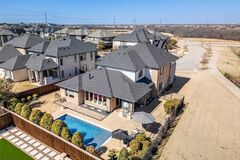 *Showings start March 11th after 12:00PM. Designed for comfort and flexibility, the first floor features both the elegant primary retreat and a private guest suite with its own ensuite bath. Experience refined modern luxury living in the heart of Frisco in this stunning Mainvue residence perfectly positioned beside a picturesque treed greenbelt and scenic walking trail. Situated on a beautifully landscaped .26 acre lot, this exceptional five-bedroom home offers private ensuite bathrooms for every bedroom, creating ultimate comfort and privacy for family and guests. The thoughtfully designed floor plan is ideal for everyday living and effortless entertaining, featuring a luxurious primary suite downstairs with a spa-inspired bath and a custom-designed closet, along with a secondary bedroom on the first level with its own ensuite bath that is perfect for guests or multigenerational living. The home offers abundant storage throughout with oversized closets in every bedroom and an impressi
