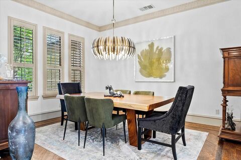 Nestled within the opulent Wyndemere Estate in the heart of Heath, this beautifully updated two-story residence offers refined living just 20 miles from Dallas & a short drive to Lake Ray Hubbard, along with Heaths dining & shopping destinations. Perfectly positioned on an almost one-acre corner lot, the property blends elegance, comfort & a private outdoor retreat. This four-bedroom, four-bathroom home showcases high ceilings & a majestic staircase that creates an immediate impression upon entry. Abundant natural light, solid wood flooring, designer lighting & high-end finishes are featured throughout. The well-appointed first floor includes two bedrooms, highlighted by the luxurious primary suite with a spa-like bathroom featuring an oversized glass shower, soaking tub, lighted mirrors & quartz vanities. A spacious secondary bedroom with a stylish modernized bathroom is ideal as a private mother-in-law or guest suite. The fully upgraded, open-concept gourmet kitchen serves as the ce