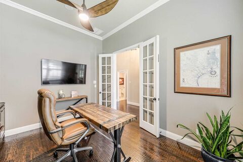 Welcome to this meticulously maintained, one-owner Highland Home that perfectly blends elegance, comfort, & functionality. Rare 4-bedroom, one story with office & media room & also .37 acres. From the moment you step inside, youre greeted by a grand, light-filled entry featuring a dramatic tray ceiling, rich hardwood floors, & an arched doorway that sets the tone for the rest of the home. Just off the entry, a private home office offers the ideal work-from-home setup, complete with built-in cabinetry & French doors for both style and privacy. Down the hall, a formal dining room with an elegant chandelier provides the perfect space for hosting memorable dinners and celebrations. The heart of the home is the open-concept kitchen & living area, thoughtfully designed for entertaining & everyday living. The spacious layout allows for seamless interaction, while the adjacent breakfast nook offers a cozy, convenient space for casual meals. Step outside to your own backyard retreatan enterta