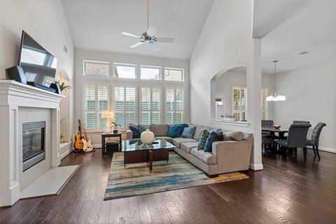 Stunning transitional 4-bedroom, 3.1-bath home located in the sought after gated community of Windsor Crest. Nestled on a cul-de-sac, the property boasts a beautifully landscaped treed front yard and a lower-maintenance, turfed backyard with covered patio.Inside, the open layout showcases high-end finishes and thoughtful design. The chefs gourmet kitchen impresses with shaker-style cabinetry, granite countertops, a farmhouse sink, Monogram six-burner gas cooktop and double ovens, Bosch dishwasher, and a spacious center island with seating and storageperfect for entertaining or casual dining.Spacious primary suite is located on the main floor with ensuite bath that features a walk in shower, soaking tub, WC, dual sinks, a vanity, two linen closets, and a large walk in closet. Office on main floor has built in cabinets and desk with french doors. Upstairs you will find an additional built in desk space and large living area as well as 3 bedrooms and two full baths.Additio