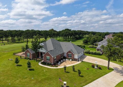 Stunning custom home on .72 acres surrounded by beautiful golf course views around the entire property. Located in Cedar Creek Country Club, a prestigious East Texas waterfront community less than an hour from Downtown Dallas. Quality and attention to detail shine from the moment you step onto the covered porch and open the custom wood doors. The open-concept living area features large picture windows, wood floors, vaulted shiplap ceilings with wood beams, and a gas fireplace. The kitchen is a cooks dream with a walk-in pantry, GE built-in oven and microwave, oven range, warming drawer, and both farmhouse and prep sinks with touch faucets. Quartz countertops, a spacious island, and large dining area make it ideal for gatherings. Great storage throughout. Three en suite bedrooms plus an office-library with built-in shelves and sliding ladder. All baths include walk-in showers with waterfall glass doors and double vanities. The primary suite offers dual shower heads, a clawfoot tub, and