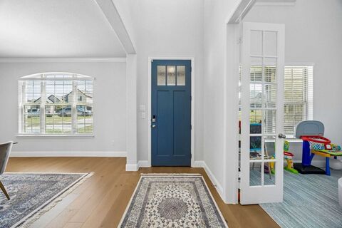 Nestled on a rare half-acre greenbelt homesite with mature trees, this exceptional Beazer Homes residence is located in the gated section of the highly acclaimed Stoney Creek community in Sunnyvale. Offering privacy, space and beautiful treed views, this home perfectly blends elegance with everyday functionality. A welcoming entry leads to a formal dining room and a private study with French doors, creating the ideal setup for both entertaining and working from home. The impressive family room showcases a dramatic two-story ceiling and is filled with natural light, seamlessly connecting to the heart of the home. The gourmet kitchen is designed to impress with quartz countertops, stainless steel appliances, gas cooktop, designer backslash, a large center island and a walk-in pantry, all opening to the living area for effortless gatherings. The oversized primary suite is a true retreat, complete with a luxurious en-suite bath featuring quartz countertops, separate vanities, a relaxing ga