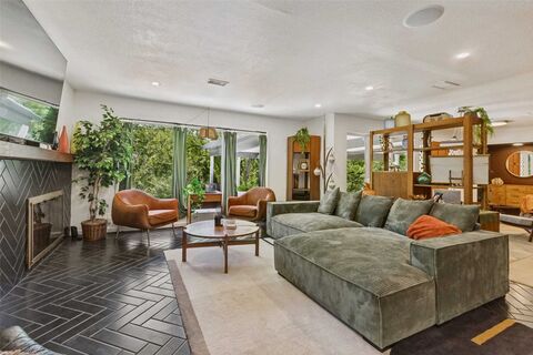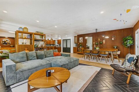 Looking for lake living with space, privacy, and a connection to nature? This single-story home offers a direct path from the property to Grapevine Lake and sits on an oversized, heavily treed .713-acre lot, creating a peaceful and private setting.Designed for both everyday living and entertaining, the home features multiple living and dining areas with an open flow and abundant natural light. The main living area is highlighted by distinctive herringbone-pattern brick flooring and a fireplace, adding warmth and character. The updated kitchen includes a large island, breakfast bar, pantry, and connects seamlessly to the main living spaces. Wood flooring and decorative lighting enhance the home throughout, while recent updates add comfort and functionality. Outdoor living is a standout, with a covered patio, deck, and fire pit area overlooking a spacious backyard with grass and mature treescreating multiple areas to relax and gather. A portion of the yard is fenced for ease of main