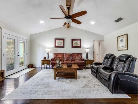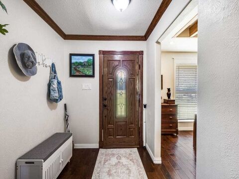 Welcome to your own private slice of country living in the highly coveted and secluded Redbud Estateswhere space, serenity, and convenience come together on a full one-acre lot in Frisco, zoned to top-rated Prosper ISD schools. No HOA. Imagine starting your mornings at the breakfast bar, sunlight streaming through a stunning picture window as birds gather among fruit treesyour own peaceful backyard retreat. This charming home invites you in with warm hardwood floors, abundant natural light from Pella windows, and thoughtful details throughout. Entertain effortlessly in the dining room, where dramatic cedar rafters create a striking focal point sure to impress guests. The vaulted living room features a beautiful stone fireplace and opens to a spacious patio, perfect for indoor-outdoor living and hosting. The kitchen is complemented by a convenient butlers pantry, an abundance of storage while additional highlights like a huge utility room and a cedar closet add both character and fun