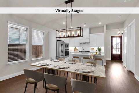 Welcome tothis immaculate one-story Drees Custom Home with 4 Bedrooms + Office or Separate Dining Room! The Cunningham floorplan is thoughtfully designed to feel larger. Stunningly beautiful hardwood floors and 10-foot ceilings. The primary shower is extra large with a spa-like feel. Includes all kitchen and laundry appliances, a modern tankless hot water heater, and plenty of smart home features to keep your electric bills lower. Plenty of backyard grassy space with a nice covered patio. Residents of Timber Creek in McKinney enjoy a community with highly-rated public schools, swimming pool, firepit, playground, a fishing pond with a gazebo, and 25 miles of walking or hiking trails with tons of trees. The sunset views from the front door are too stunning to capture on pictures. Come see this unique and beautiful custom home before it sells.