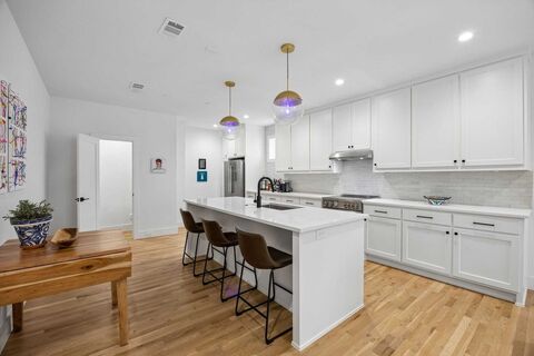 Situated in the heart of Lakewood, this beautifully designed condo blends modern style with effortless comfort in one of Dallas most desirable neighborhoods. Located just moments from the scenic trails and recreation of White Rock Lake, this home offers convenient access to miles of biking, running, kayaking, and outdoor exploration.Inside, the light filled open layout showcases wide plank white oak flooring that flows seamlessly throughout, creating a warm and sophisticated feel. The kitchen is thoughtfully designed for both everyday living and entertaining, featuring a pristine white quartz island and countertops, decorative glazed tile backsplash, classic white shaker cabinetry, and premium stainless steel appliances including a Bertazzoni 36 inch French door refrigerator, induction range, undermount microwave, and sleek under mount sink.The inviting living area is bright and welcoming with abundant natural light and easy access to the private balcony. The spacious primary suit
