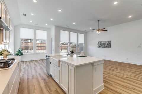 Beautifully upgraded 1-story Highland Home in the desirable Mantua Point community, built in 2022 and showing like new. This thoughtfully designed home offers 3 bedrooms, 3 baths, and a spacious entertainment,media room, providing flexible living ideal for movie nights, gaming, a home office, or potential 4th bedroom conversion (currently marketed as a 3-bedroom per builder plan). Soaring ceilings and floor-to-ceiling windows with custom blinds fill the home with natural light. The open-concept kitchen features upgraded finishes, abundant cabinetry, a large island, and a built-in butlers cabinet with serving bar, seamlessly connecting to the living and dining areas for easy entertaining. Enjoy a covered patio and spacious backyard perfect for relaxing or hosting guests. Investor friendly with strong rental appeal. Residents enjoy Mantuas resort-style amenities including pool, splash pad, pickleball courts, dog park, and trails. Located near H-E-B, future Kroger, and Van Alstyne ISD,