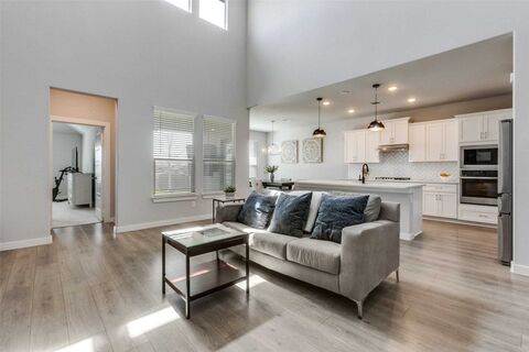 Welcome to this Beautiful 3BR 2.5BA home, plus a dedicated office, conveniently located within close proximity to Rockwall, Downtown Dallas and Lake Ray Hubbard! Step inside to an open floor plan with high ceilings, and natural lighting throughout the home. The heart of the home is the inviting kitchen, which opens seamlessly to the dining room and large living room. The kitchen boasts gorgeous quartz countertops, stainless steel GE appliances, a gas cooktop, and neutral paint throughout that creates a bright, cohesive feel. The primary bedroom is conveniently located on the first floor, complete with a view of the backyard, a spacious walk-in closet, and an elegant en-suite bath boasting double sinks, a built in desk area, and a separate shower. Upstairs, youll find two additional bedrooms and a full bath, ideal for family, guests, or a home office. Step outside to a grassy backyard with a cozy covered patio, perfect for relaxing evenings or weekend gatherings. Just minutes from I-3