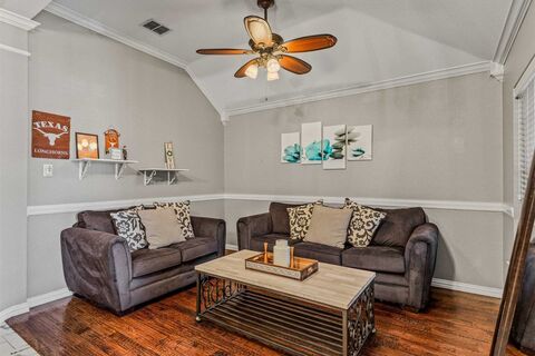 Welcome to 321 Deaton Dr in the desirable Woodcreek community of Fate, just minutes from Rockwall with convenient access to Dallas. This well-maintained 3-bedroom, 2-bath home offers a bright open-concept layout with beautiful hand-scraped hardwood floors throughout the main living areas.The kitchen is ideal for entertaining with granite countertops, stainless steel appliances, and a large island with seating, opening to the spacious living and dining areas. In addition to the bedrooms, the home also features a versatile bonus roomperfect for a home office, playroom, or second living space.The backyard backs directly to Billie Stevenson Elementary School, offering added convenience and no immediate rear neighbors. Enjoy the extended covered patio, fenced yard, and dedicated dog run, perfect for pets and outdoor living.Located in Woodcreek, residents enjoy community pools, parks, and walking trailsmaking this home the perfect blend of comfort and convenience.