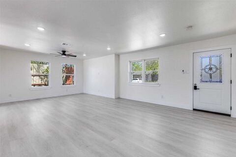Fully renovated and move-in ready, this single-story home offers 3 bedrooms, 2 full bathrooms, and 1,266 square feet of thoughtfully updated living space. The open floor plan creates a functional layout, ideal for everyday living and entertaining.Recent improvements include a new roof, updated plumbing, and updated electrical systems, providing added peace of mind. Interior features include luxury vinyl plank flooring throughout and a kitchen equipped with a gas range and vent hood for practical use.The property sits on a spacious lot with a large backyard, offering flexibility for outdoor activities. Alley access leads to a generously sized rear driveway, providing convenient off-street parking.Located in Mesquite, this home is near Town East Park, near North Mesquite High School, and near Town East Mall, with easy access to shopping, dining, and local amenities.