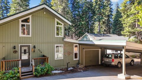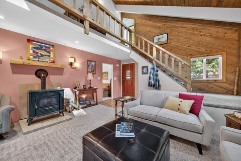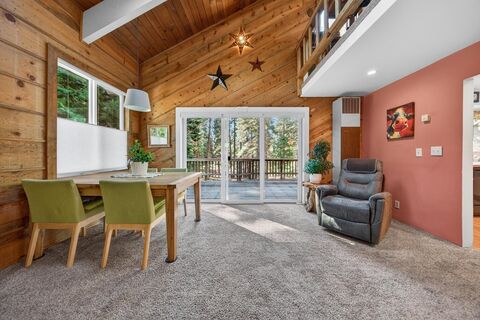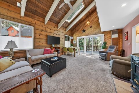 This beautiful Lake Almanor Country Club home is situated on a spacious .54-acre parcel with level access and a serene setting among towering pines! The stunning living room features vaulted wood ceil