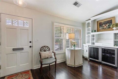 This charming 2-bedroom, 2-bath bungalow sits in the heart of Brookhavenjust a short stroll to favorite restaurants, shops, and all the neighborhood spots you love. Inside, youll find an inviting open floor plan that connects the kitchen, dining area, and family room. The kitchen features stainless steel appliances, granite counters, an island with breakfast bar, and a handy pass-through window that keeps everyone connected. Framed by custom plantation shutters across all front facing windows, the inviting family room draws you in with a cozy wood-burning fireplace, built-ins for display or storage, and a handy beverage chiller that makes relaxing or entertaining a breeze. Step outside to enjoy a welcoming front porch and a private back patio thats perfect for morning coffee or quiet evenings. Just across the parking lot, a peaceful neighborhood green space offers wooded views that make you forget youre in the middle of the city. This is the kind of home that feels good the moment