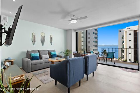 ENGLISH BELOW] Hermosa unidad en el 5to piso con balcon que ofrece hermosas vistas al mar y a la Bahia. Este encantador condominio cuenta con una recamara amplia con closet y balcon privado con vista a las montanas, bano remodelado y cocina totalmente actualizada. Tambien incluye closet para blancos y un area dedicada para centro de lavado, brindando mayor comodidad. El balcon principal es el espacio perfecto para relajarse y disfrutar del paisaje y la brisa marina. El edificio cuenta con elevador con acceso al rooftop, donde encontraras excelentes amenidades como alberca infinity, barra, camastros y banos con regadera. Ubicado a solo una calle de la playa y justo frente a Plaza Los Amores, combina comodidad con una excelente ubicacion. La unidad incluye una bodega de 3.06 m2 y...