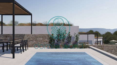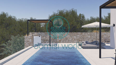 The property features large terraces on both the ground floor and the first floor, perfect for enjoying the views and breathtaking sunsets. It also includes a swimming pool, private parking, BBQ, and pergola.