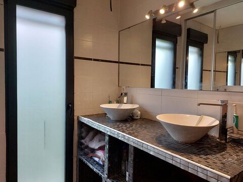 The separate sleeping area is accessed via a central hallway leading to four bedrooms measuring 13 m2, 12 m2, 12 m2 and 11.80 m2, each fitted with built-in wardrobes. A spacious 8.52 m2 bathroom (double washbasin, shower and bath) and a separate toilet complete this area.