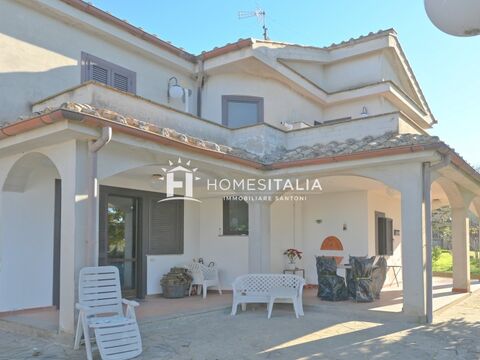 This charming estate, comprising two residences (semi-detached), sits in a commanding position with breathtaking vistas, mere kilometres from Viterbo's medieval centre. The principal residence (approximately 190 sq. m.) and its companion property (roughly 140 sq. m.) are nestled within a meticulously maintained, enclosed garden (2.923 sq. m.).
