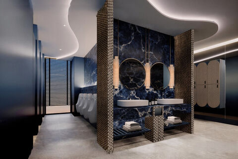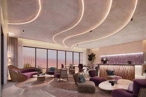 Residents have access to over 8,600 sqm of shared spaces, combining leisure, wellness, and greenery. Swimming areas cover more than 2,700 sqm, including a sky pool, beach-style pool, kids pool, and pool bar. Around 2,700 sqm is dedicated to lifestyle facilities, with 3,000 sqm of landscaped gardens.