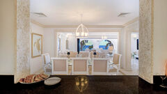Inside, the residence benefits from higher ceilings, enhancing the sense of space and light. The open-plan living and dining areas connect seamlessly to both terraces through wide arches and sliding doors, creating a natural indoor-outdoor flow that defines Caribbean living.