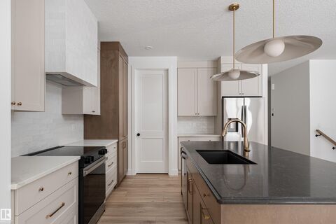 Backing the Fenwyck forest awaits a stunning bungalow built by HRD Homes. With over 1,400 sqft of living space this 1 bed, 1.5 bath home w/ an oversized heated triple garage is waiting for You to call it home. Featuring vaulted ceilings w/ a stained maple beam that spans the living & dining room, custom two toned cabinetry & tiled hood fan, s/s appliances, quartz countertops, vinyl plank flooring, gas fireplace, his/her sinks w/ custom tiled shower in your 5 pce ensuite, spacious walk-in closet, 8ft solid core doors, central A/C, main floor laundry w/ sink, tankless hot water system, beautifully accented bronze fixtures & lighting, hot/cold taps in the garage w/ floor drain, BBQ gas line & custom built ins throughout. With its timeless & sophisticated design this home is perfect for the empty nester or those looking to downsize yet still wanting the high end finishings and attention to detail.