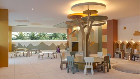 Indoor: Lobby, modern cinema, playroom, game room, coworking space, gym, multi-purpose room, and lounge bar.