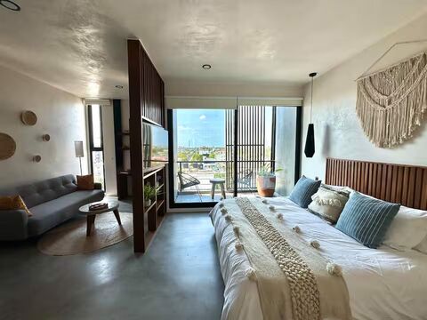 Discover the perfect balance between design, functionality, and location at Torre 48. This 45.55 square meter studio (41.53 m2 interior + 4.02 m2 terrace) has been carefully planned to offer you a smart home where every space serves a purpose without sacrificing style or comfort. Located on a high floor, it offers unique city views and an incredible breeze. With a loft-style layout that integrates the kitchen, living room, and sleeping area, this unit is ideal for investors, digital nomads, or couples looking for an efficient property with great potential in one of Playa del Carmen's most sought-after areas.